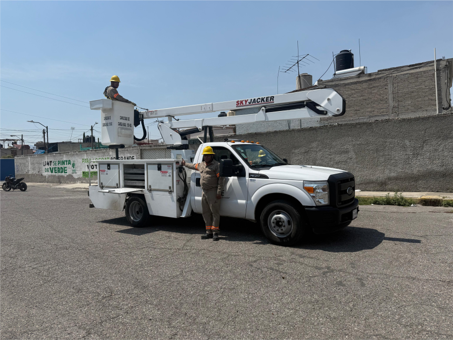 Disponibilidad de grúas tipo canastilla y grúa Hiab, todas con certificación vigente, ideales para trabajos en altura y maniobras seguras en instalaciones eléctricas.
